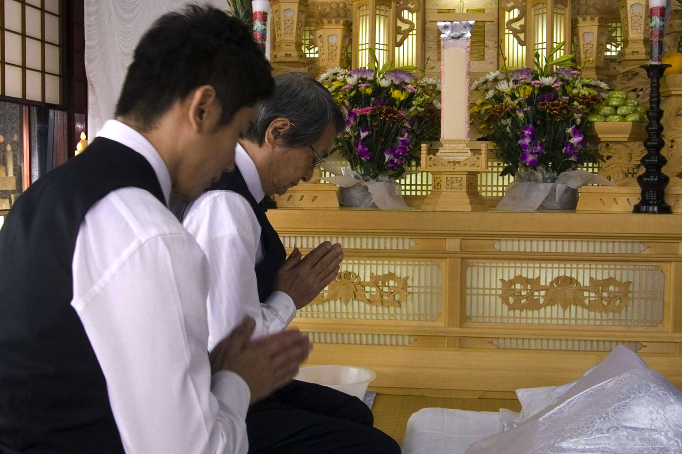 Looking into the employment ads, he finds a promising offer at what sounds like a travel agency. Daigo applies at a quiet little office managed by an assistant (Yo Kimiko), and soon the owner, Mr. Sasaki (Tsutomu Yamazaki), appears. The interview is brief. He gets the job and a cash advance. He discovers the agency handles travel, all right -- to the next world. It is an "encoffinment," or undertaking, business.