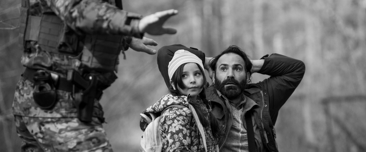 The titular border is the one separating Poland from its neighbor to the east, Belarus. When we first see a portion of the border, filmed from an aerial angle, it is a spectacularly beautiful green, the evidence of one of the last remaining primeval forests in Europe. But that visual beauty doesn't last. Soon enough, the image shifts to black and white, and we enter a human world of violent oppositions and tragic ironies.