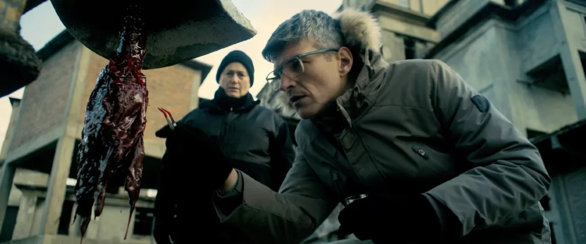 "Hell Hole" was obviously inspired by the master John Carpenter, owing a great deal to his version of "The Thing"—a remote outpost overtaken by a monster that can look like an ordinary person—and movies he made about people essentially stumbling into portals to Hell in films like "Prince of Darkness" and "In the Mouth of Madness." The hapless souls in this one are a team (led by Poser's Emily) that's fracking in a remote corner of Serbia when they drill into, well, something impossible. They find a body in a sort of cocoon of a centuries-old soldier, and he's still alive. While they discuss what to do with this break in reality, they notice something even stranger about the Frenchman in that there appears to be something that occasionally peeks out of his nose or ear. Before you can say "burn it with fire," the monster that was inhabiting the poor soul has jumped ship to John (Adams) and set out to wreak more havoc.