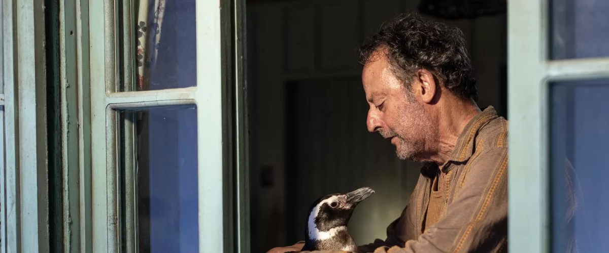 In the script from Kristen Lazarian and Paulina Lagudi Ulrich, the fisherman, João, has suffered a devastating loss at the beginning of the film, making the surprising arrival of the penguin that much more poignant. Jean Reno gives a vulnerable, moving performance as João, a simple man broken by tragedy transformed by the thrill of this unexpected connection. He shows great range here, from sorrow to joy to an impish sense of playfulness, and his openness is captivating. And as João's wife, Maria, Oscar nominee Adriana Barraza is a sturdy anchor, a steady source of calm no matter the highs and lows. She's also not too thrilled at first about having a penguin pitter-patter around the kitchen of her modest, beachfront bungalow.